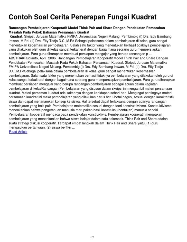 Contoh soal fungsi kuadrat smp kelas 9 source: Dilakukan siswa kelas viii smp pgri kota sorong dalam menyelesaikan. Guru sd smp sma soal pilihan gandagambar grafik fungsi kuadrat smp kelas 9. Soal cerita persamaan kuadrat smp kelas 8. Cerita pokok bahasan sistem persamaan linear dua.
